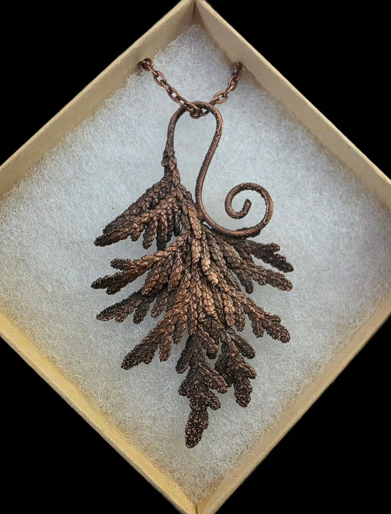 A talisman born of tree and alchemy. This sacred necklace cradles a real piece of cedar, sealed in time by the art of copper electroforming - where metal grows like a spell, slowly and with purpose. Cedar is a tree of power - a guardian spirit. For centeries, it's been used in scared rituals to cleanse, protect, and banish what...