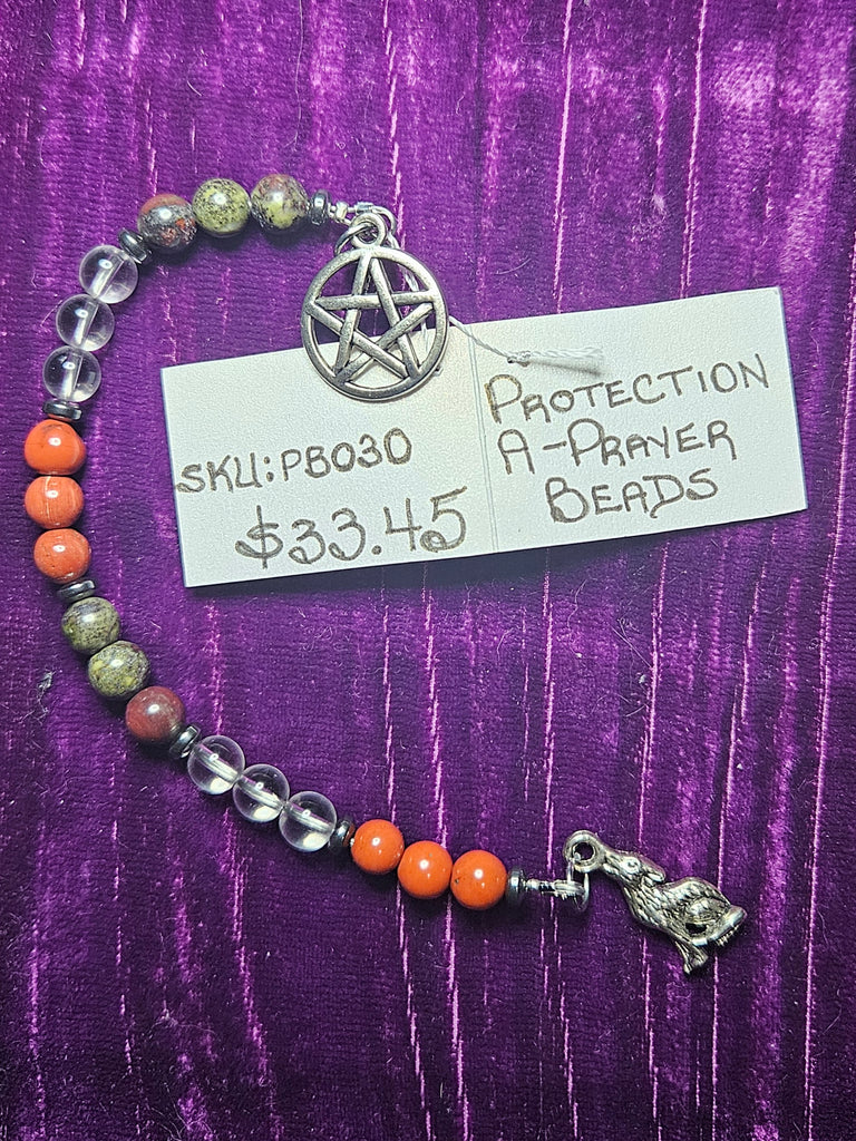 Each set of my Prayer Beads are made with Tiger Tail Wire, Gemstone Beads and Pewter Charms and Pendants