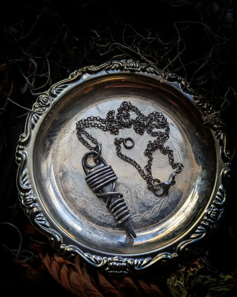 In folklore Iron nails have had various uses such as being used in witch jars to ward off bad energy and amplify a spell; they have also been driven into door frames to protect ones dwelling from unwanted malevolent energies or driven into the 4 corners of one's property to protect their home. Iron nails can also be worn as...
