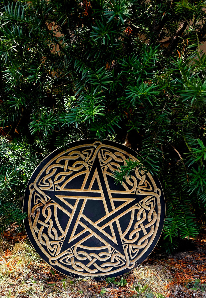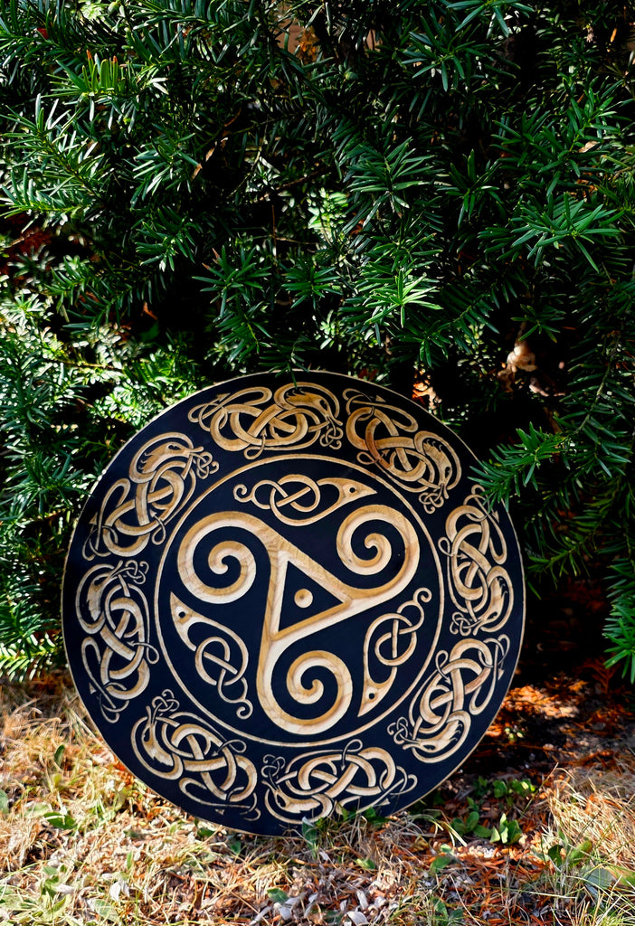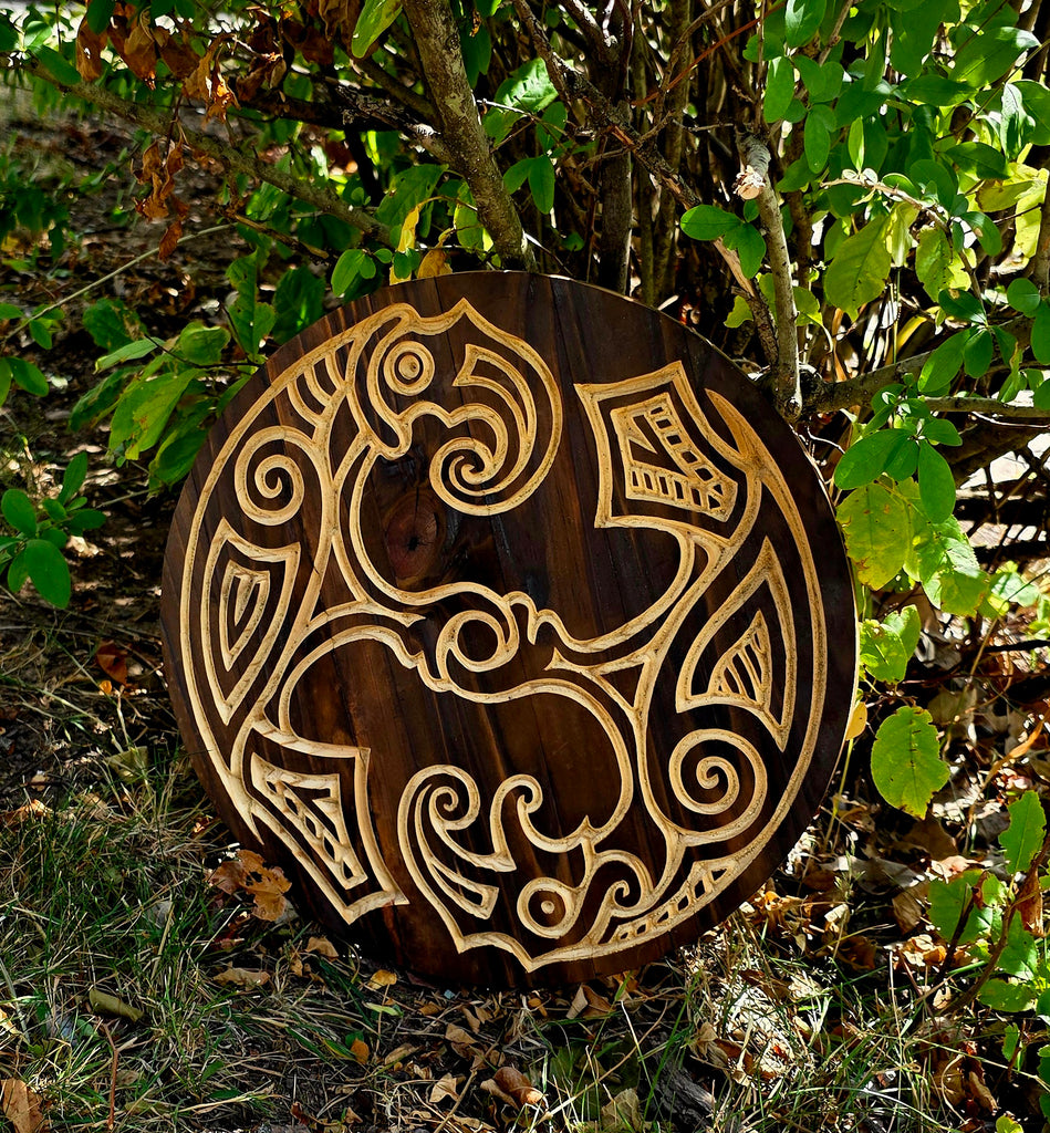 Each wooden plaque is hand made from pine and stained. Each design is never the same. Size: 10x10 round