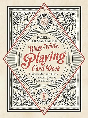 This unique 78-card poker deck features Rider-Waite« Tarot images. The deck includes 22 Major Arcana, 52 Minor Arcana combined with their matching playing card indices and four Knights, which may be used as Jokers. The deck also includes a 56-page booklet featuring instructions for two tarot games and traditional card meanings from the Rider-Waite Tarot.